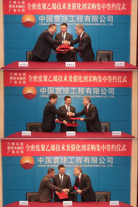 在與會人員的共同見證下,各方代表分別簽署了三個項目全密度聚乙烯和高密度聚乙烯技術引進合同。