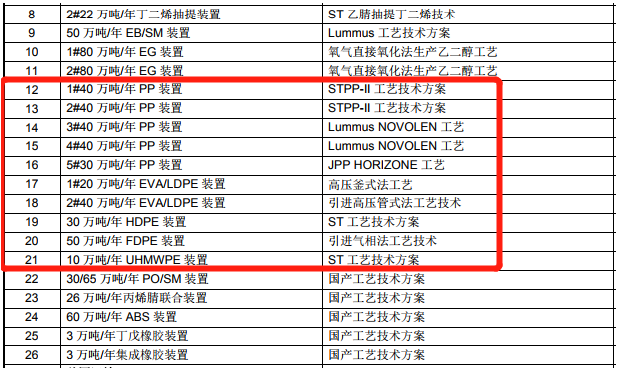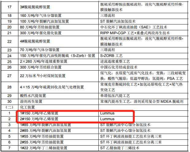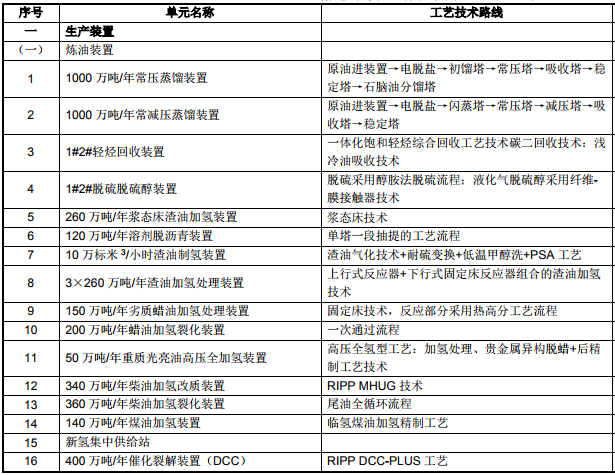 裕龍島煉化一體化項目(一期)主項表